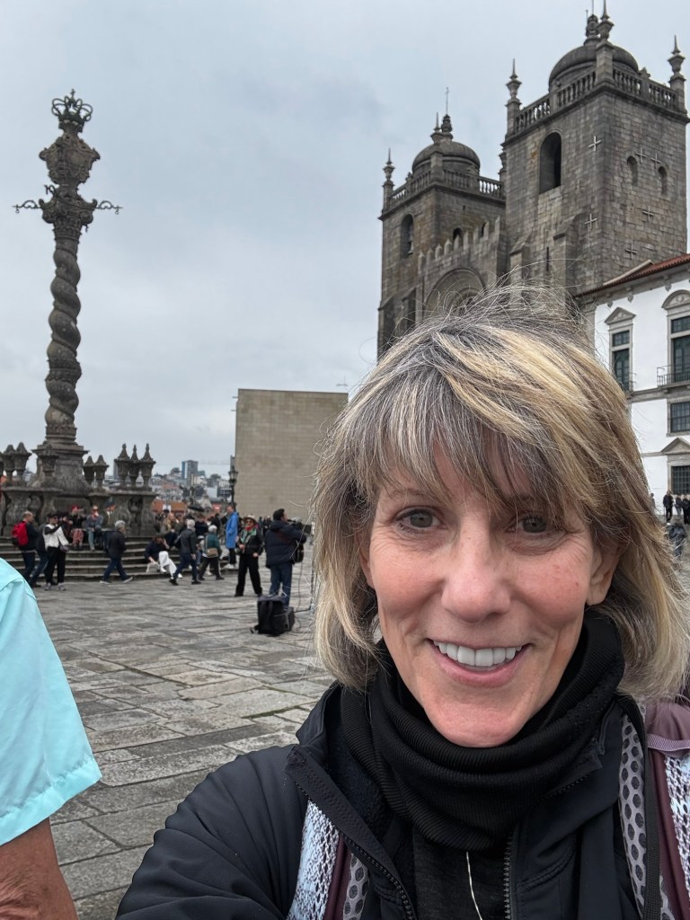 I met some wonderful folks in the Newark airport and on the plane to Porto. I shared a hired car from the Airport to near the Porto Cathedral with Maria from Texas. After she settled into her albergue, we did a little bit of sight seeing, bought our pilgrim credentials at the Cathedral, took in the views from the Cathedral’s plaza, and walked down to the river and back to drop Marie off at her Albergue.