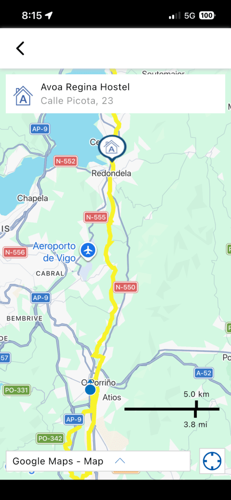We stopped at a little cafe/bar just before the steep downhill and had a snack at about 2:30 today. As we left, I asked the barkeep how much farther it was to Redondela where we are staying tonight. When he wiggled his hand in the air and said “mmmm…5k”, I couldn’t contain my resounding YESSSS! Fist pump and all (lol). The bar full of pilgrims and locals laughed and celebrated with me.